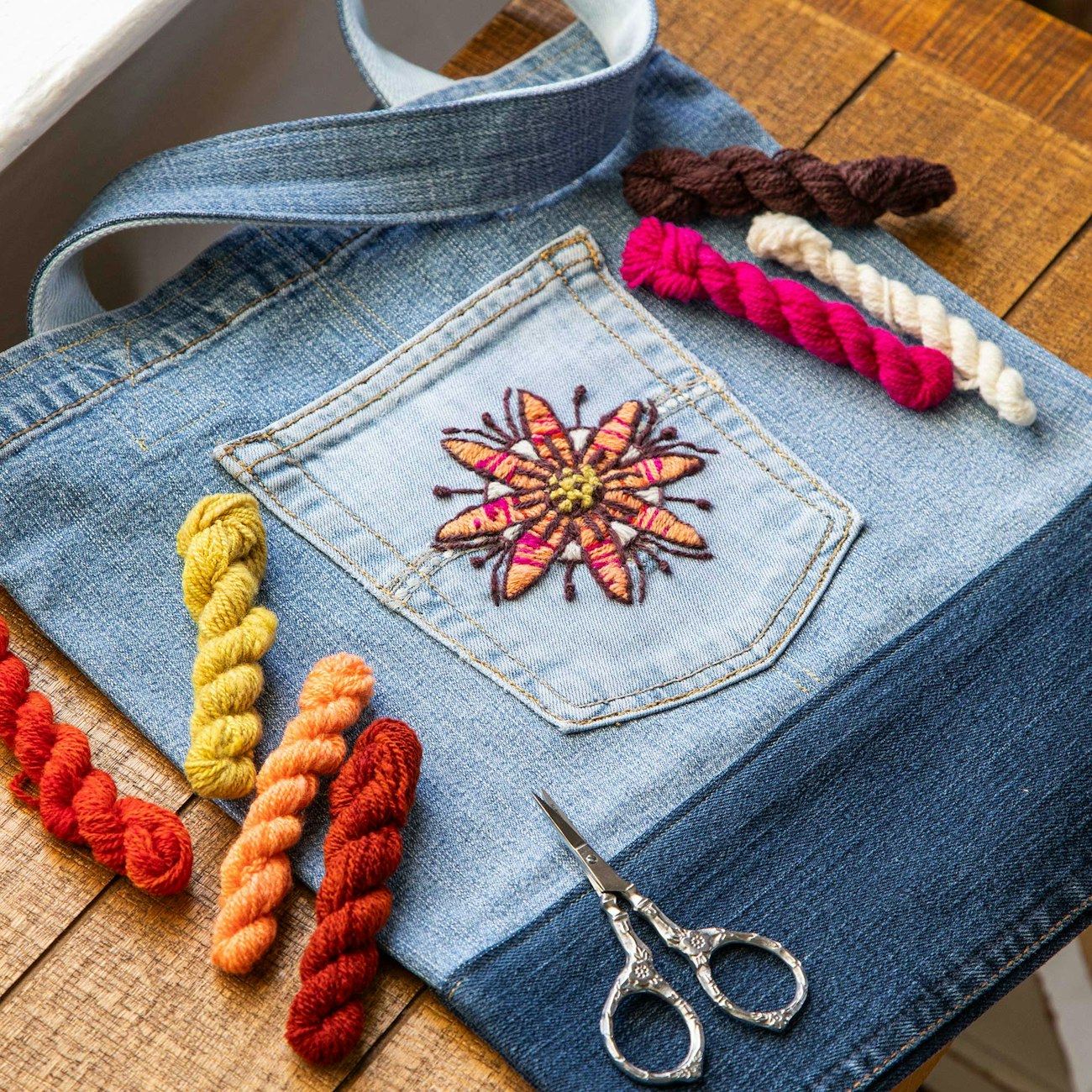Think your yarn isn’t consistent enough for embroidery? Think again! Texture can give simple patterns a modern appearance, and there’s always the option to couch your wildest yarns onto the surface. Learn more about choosing fiber and spinning for embroidery in “Sublime Stitches: Spinning Wool for Embroidery”, then try it yourself with Ladianne Henderson’s Retro Botanical Crewelwork Tote.