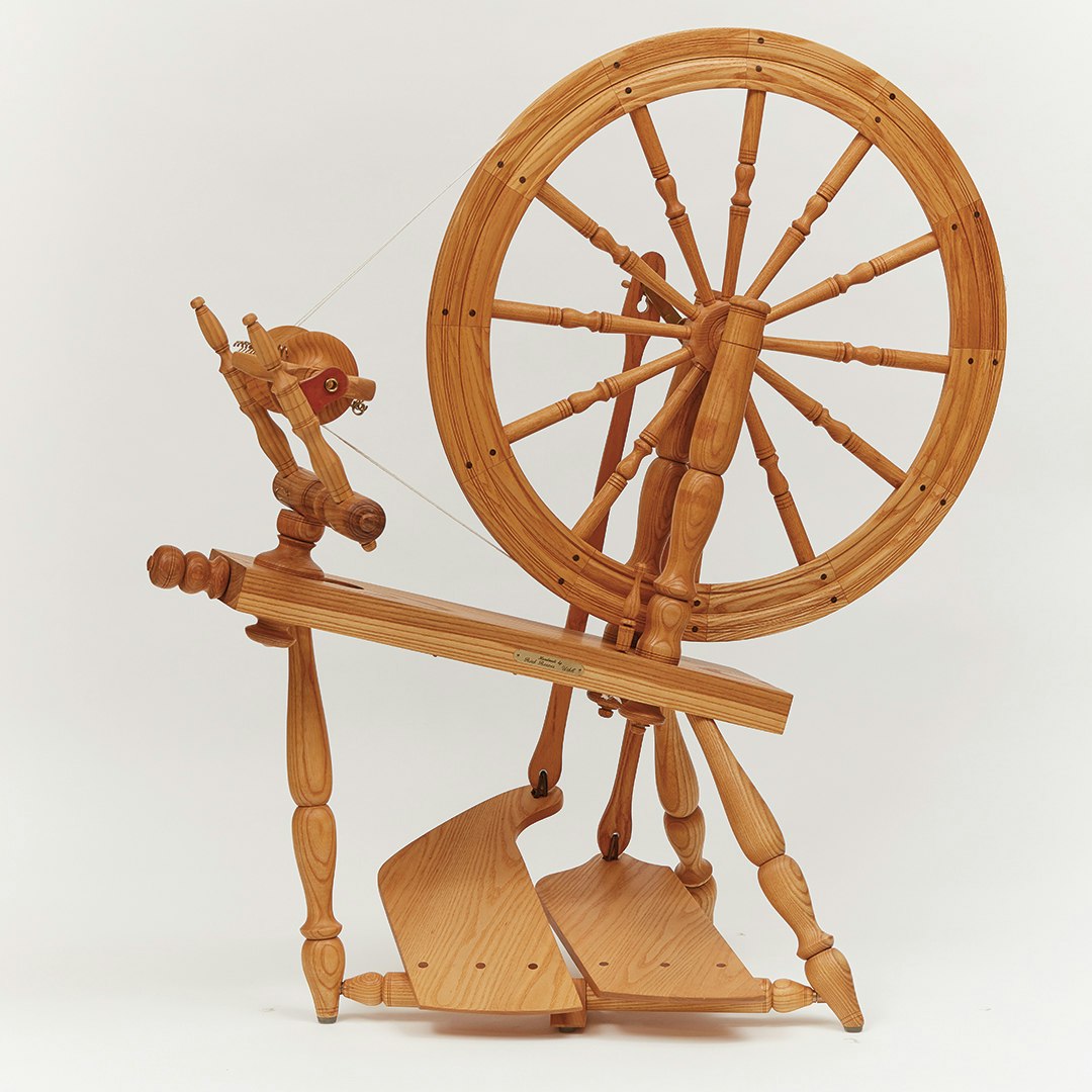 One day in 1964, Eleanor Mast, a longtime spinner living in Waterloo, Iowa, brought a wheel to Rick’s shop in rural Waverly and asked if he could make some replacement parts. Rick had always made machinery—things that do something—and Eleanor’s challenge intrigued him. He looked at wheels in the collection at the Vesterheim Norwegian-American Museum in Decorah, Iowa. Designing and building spinning wheels soon became a fascinating hobby. Rick saw his early wheels, made in the 1960s and 1970s, as learning experiences. He kept “going down dead ends” and developing new solutions. Eventually Rick and his wife, Marge, quit their jobs and focused on creating an efficient workshop to craft the finest spinning wheels.