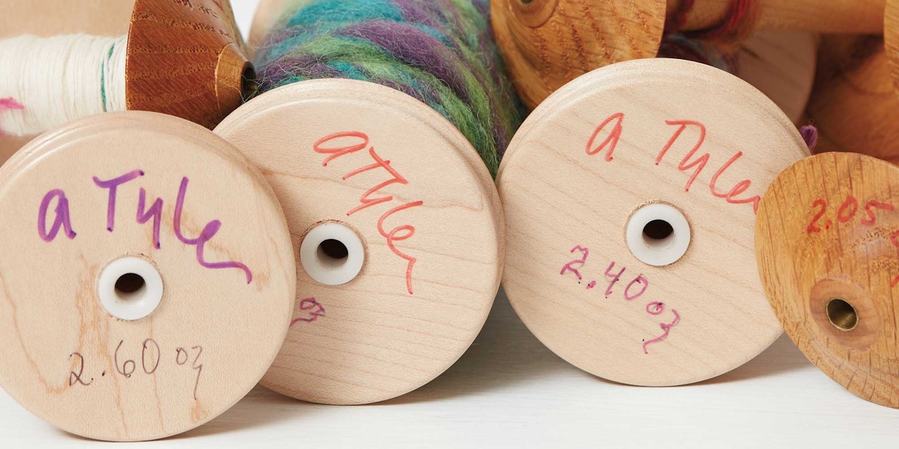 In the Spin Off Summer 2017 issue, Amy shared her hack for easily calculating the weight of yarn while it’s still on the bobbin. Write the weight of each bobbin on the end and you’ll be able to figure out the yarn weight by simply subtracting the bobbin weight.