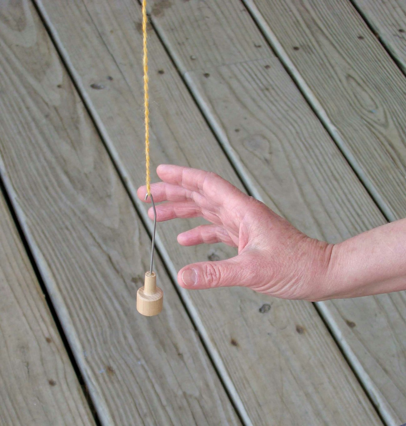 To make a reference sample of this length without making a tangle, use an orifice hook as a sort of drop spindle to help you ply a long singles back on itself. Here's how: