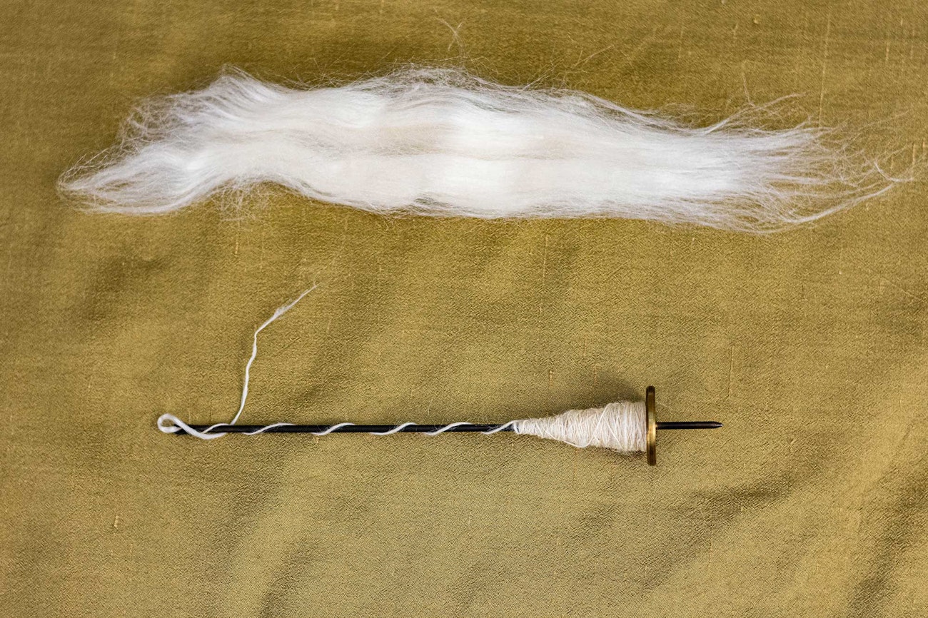 Silk spun on a takli spindle. Photo by Pamela K. Schultz
