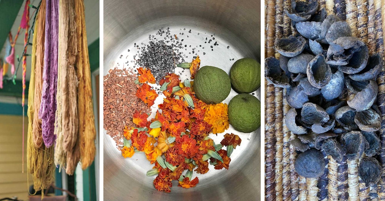 From left: Dip your toe into natural dyeing as these authors have done with solar dyeing, marigolds and other plant material, and black walnut hulls. Photo credits (left to right): Sylvia McFadden, Martha Owen, and Devin Helmen