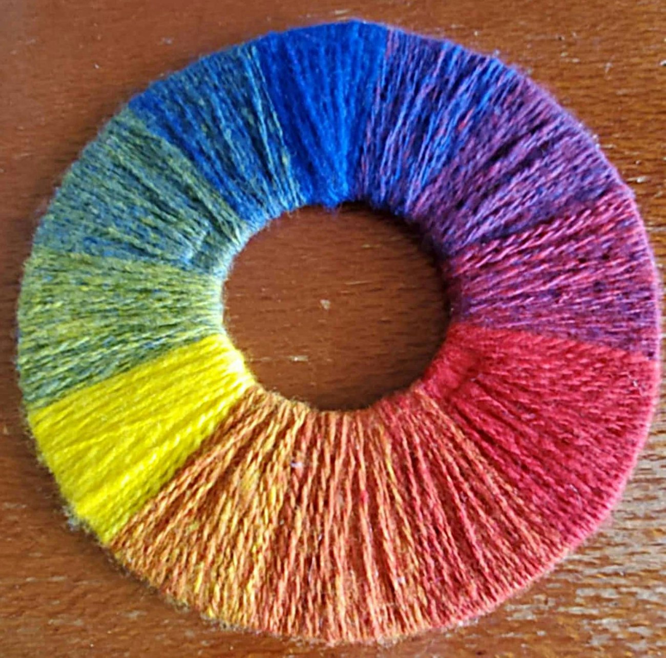 During the dyeing process, the anthocyanins degrade, but the resilient carotenoids remain. So, as spring progresses and the weather warms, flowers tend to become brighter with a deeper tone of yellow, orange and red-orange as the anthocyanins fade into the background. As I sit near the window at my spinning wheel, I am inspired to reflect these transitions in my fiber work so I can carry spring with me in my handspun garment. Spring transitions in the color palette of my natural surroundings can be mirrored by color palettes and gradients in handspun projects using several techniques.