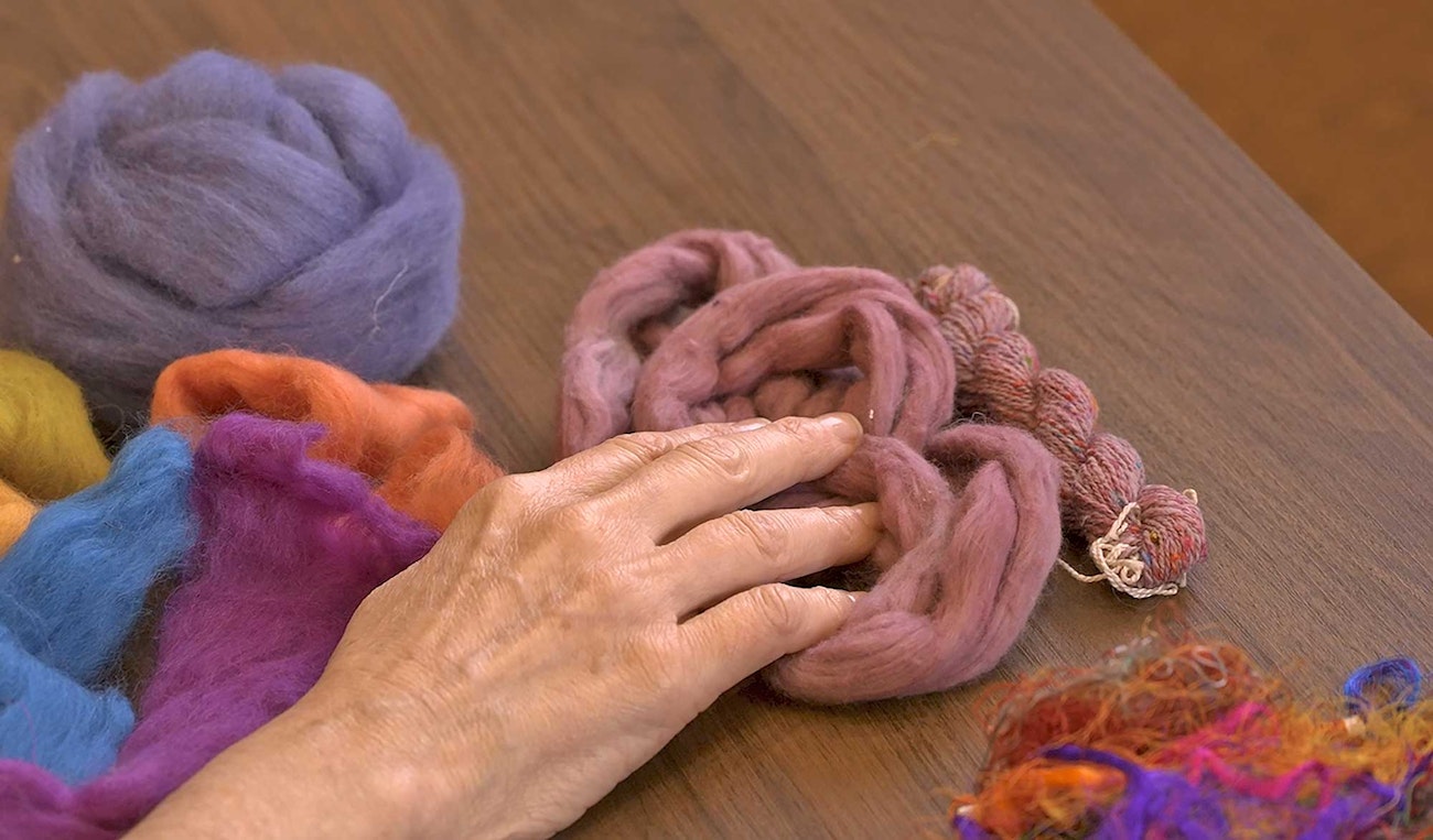 Unapologetic pops of color and texture spun into a soft single are perfect as the weft for a cozy scarf. Angela shows the finished project in the video.