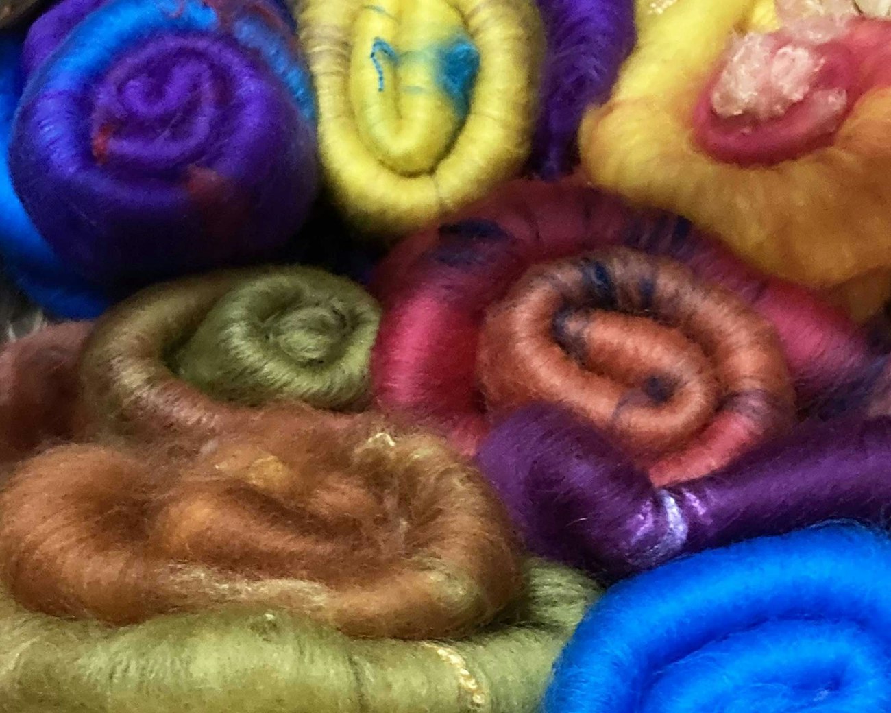 You can also blend garneted add-ins and base fibers in subtle color combinations.