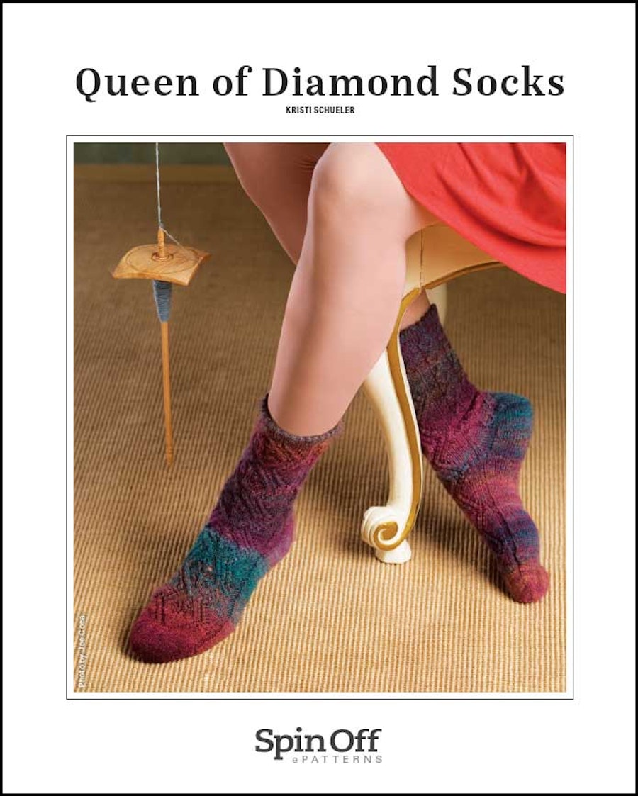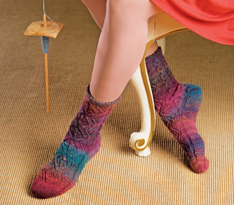 Kristi’s dyeing explorations resulted in a vivid, somewhat-striped yarn, which she then used to knit a fun pair of toe-up socks with diamond ribbing.