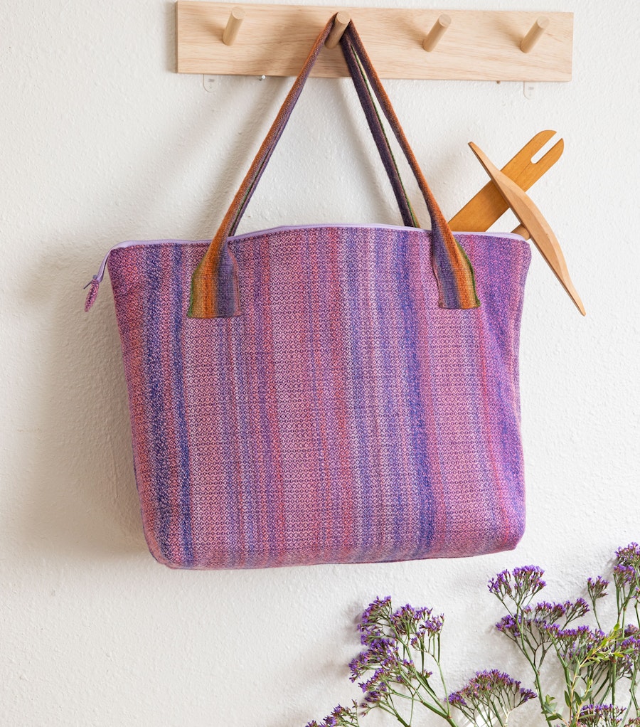 Warp Length 597 ends 3 yd long (includes floating selvedges, 22" for sampling and take-up, 24" for loom waste). Note: The bag exterior uses 42" of fabric. The remaining 13½" may be used for exterior pockets or another project if desired.