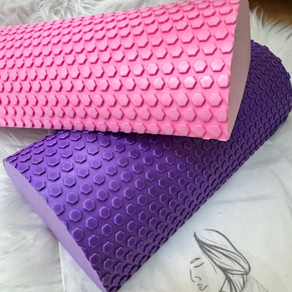 I also offer the Half Foam Roller, which allows the user to stretch the upper body over it while remaining stable on the ground, which aids in opening up the chest and upper back—important for makers who spend a lot of time hunched in front of their crafts.