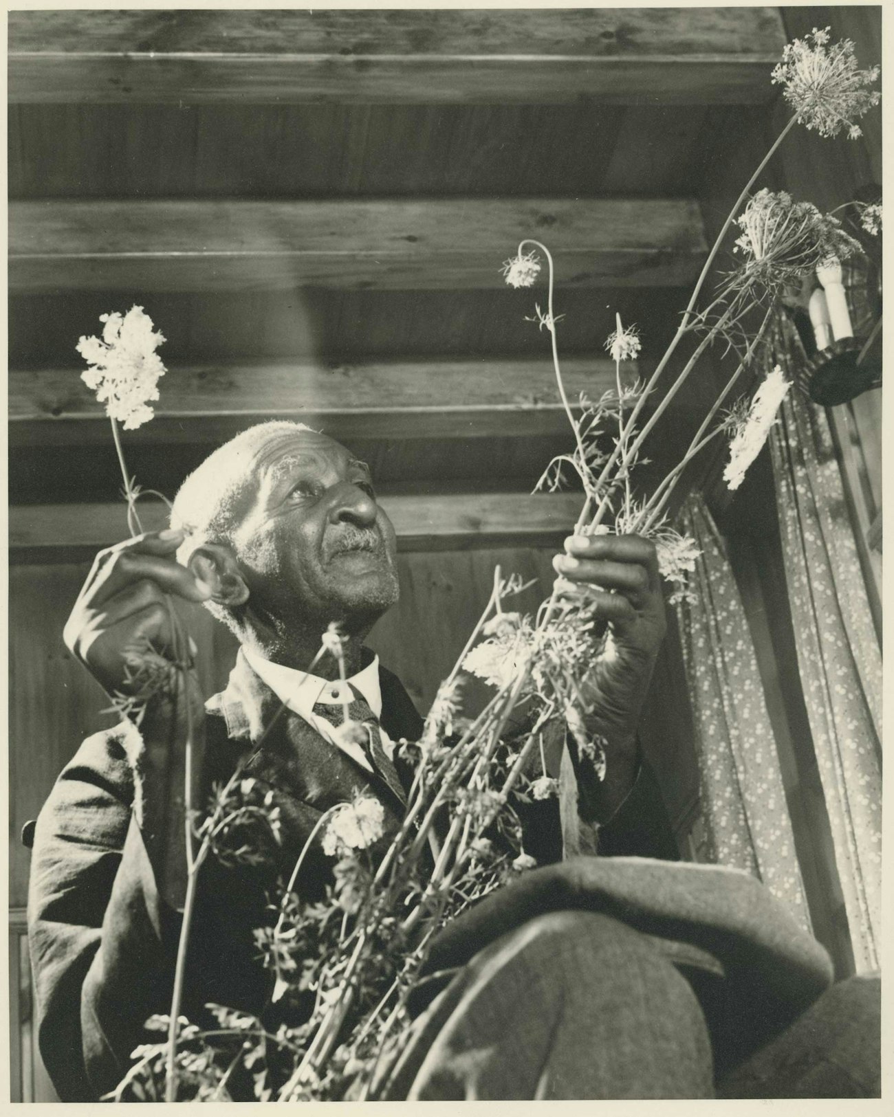 George Washington Carver holding Queen Anne’s lace flowers, Greenfield Village, Michigan, 1942. Image from the collections of The Henry Ford.