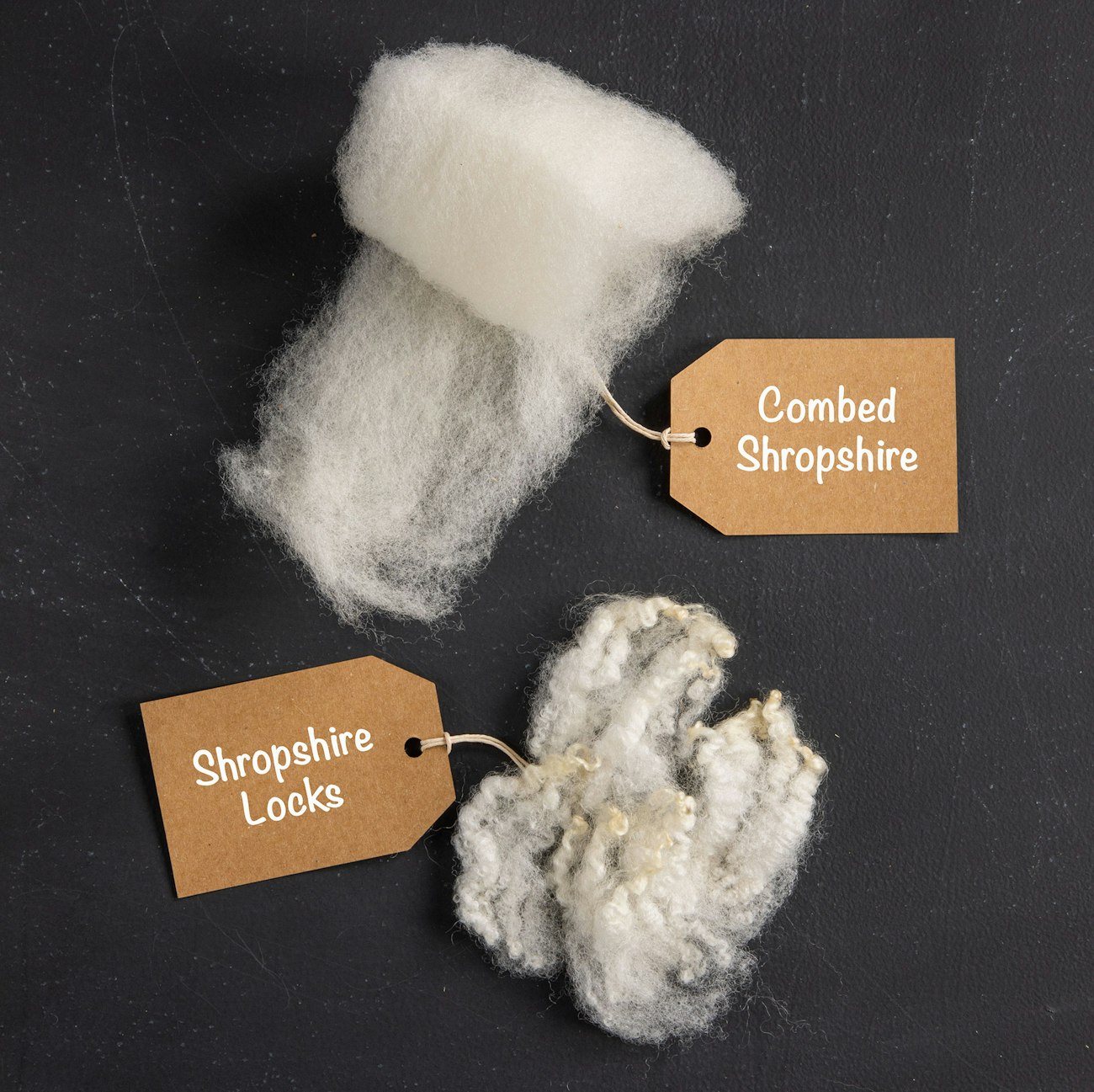 For her experiment, Heavenly chose a bouncy Shropshire fleece. One combing pass using fine wool combs was all that this clean fleece needed to prepare it for spinning.