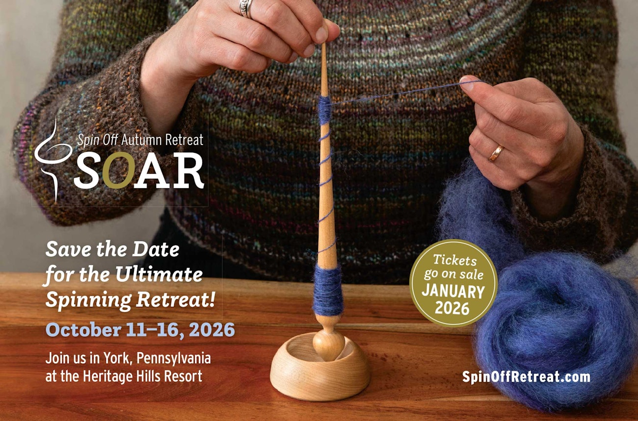It was truly wonderful to see so many familiar faces and meet new friends at this year’s Spin Off Autumn Retreat (SOAR). Each year, the event is just a little bit different, but every year we are delighted by the spirit and creativity of our fellow spinners. We hope you’ll join us next year at Heritage Hills Resort in York, Pennsylvania—mark your calendars for October 11–16, 2026, and keep an eye on your email for ticket information. We can’t wait to make more memories together, but in the meantime, here are some cherished memories from SOAR 2025. —Spin Off editors