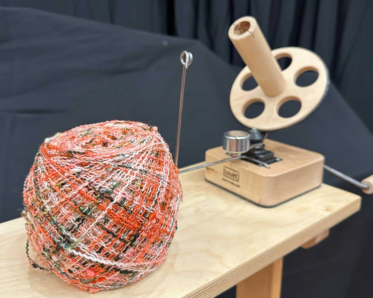 The folks at Louët graciously provided a yarn-winding station, featuring the new Louët ballwinder. Yarn pictured is Mandy Slub in Flamingo, available from Yarn Barn of Kansas. Photo by Tiffany Warble