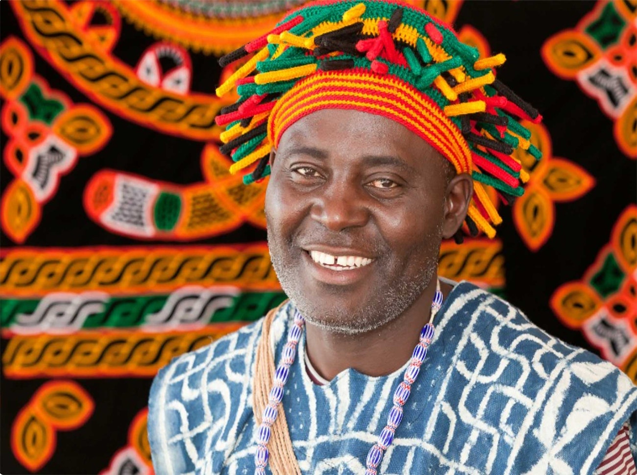 Ngang Ignatius Fru, Mankon weaver from Cameroon at the Santa Fe Folk Art Market. Photo by Bob Smith