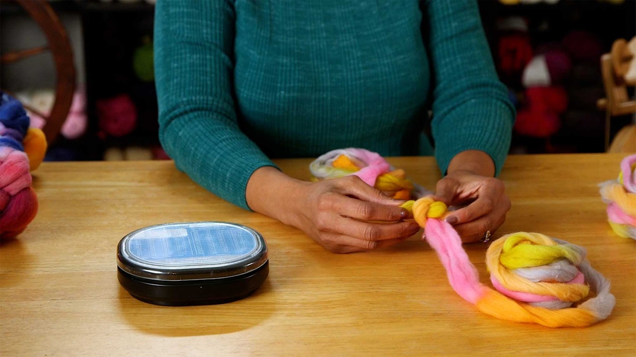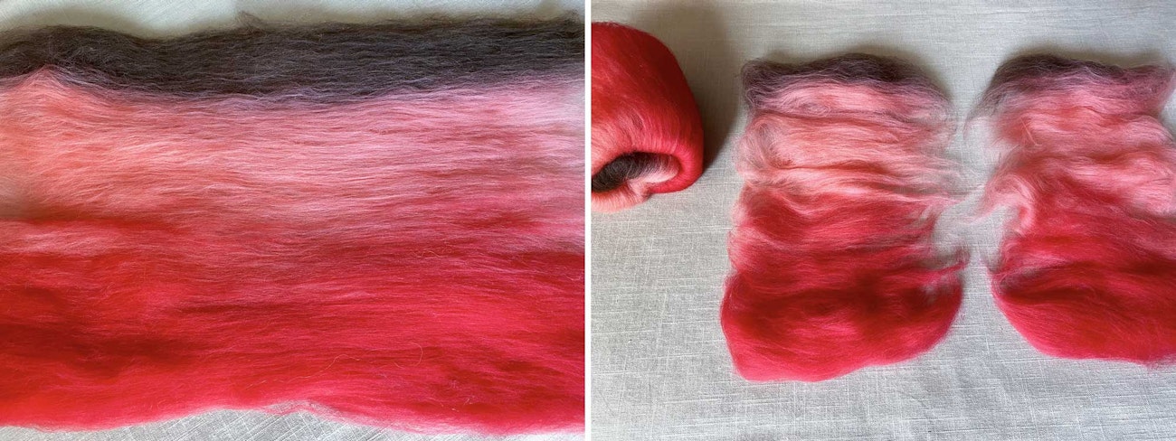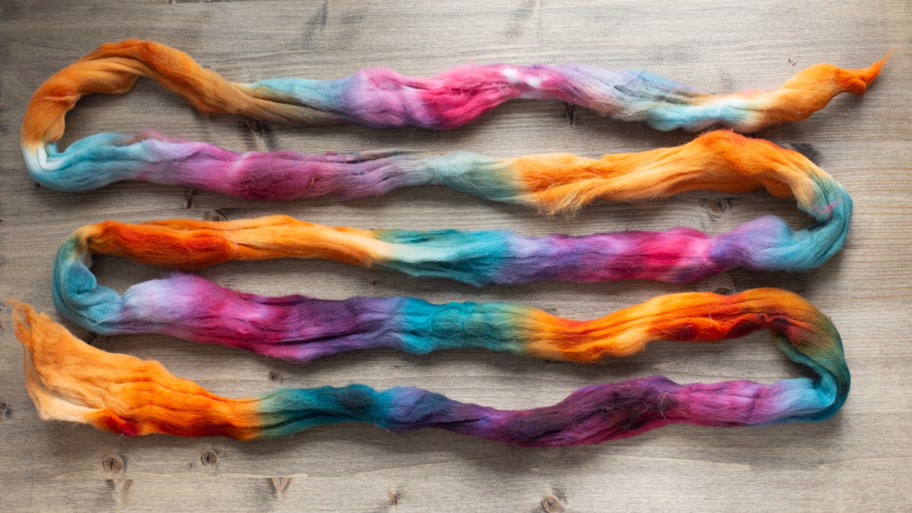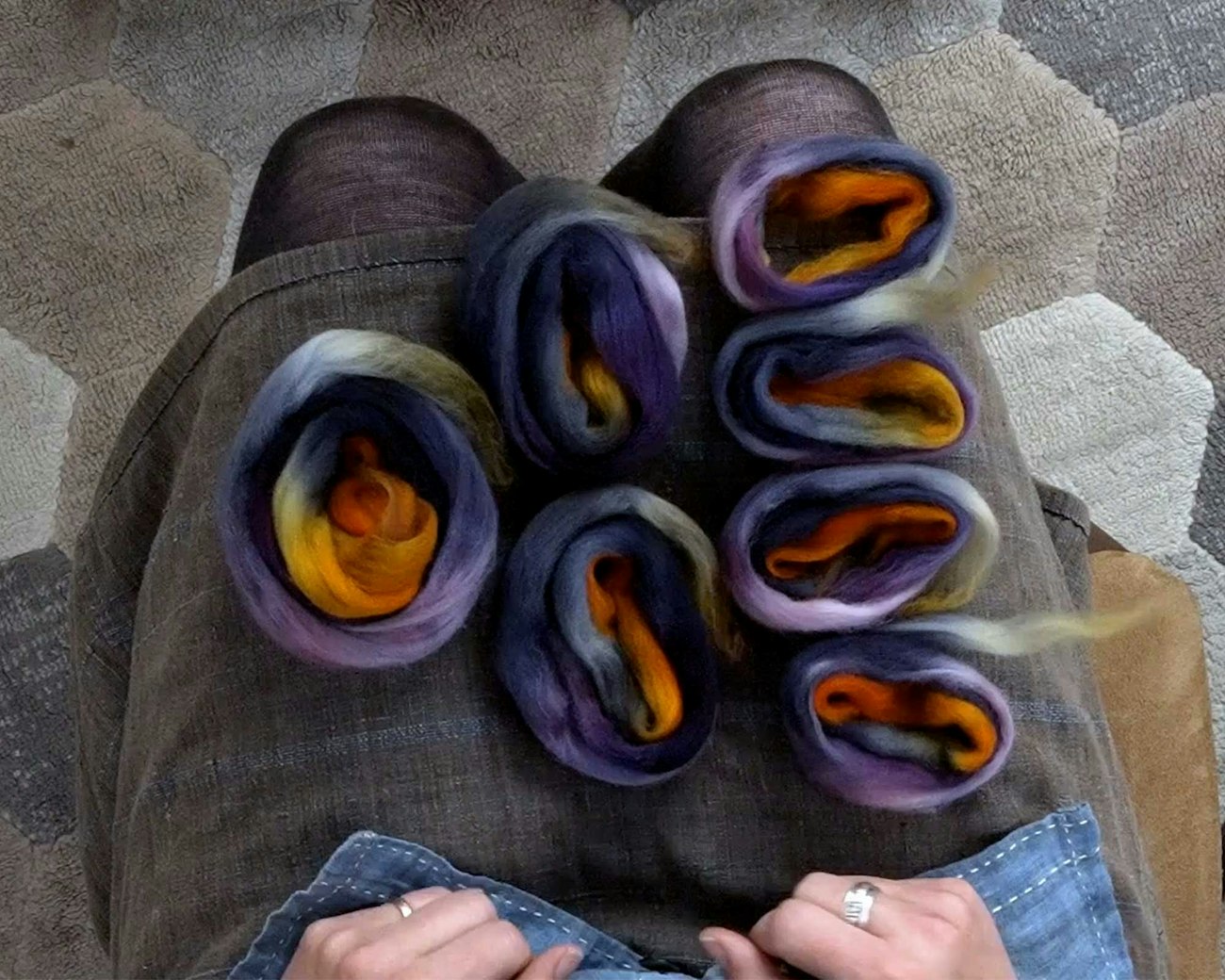 In her video above, Kate likes to bundle each fiber into a little nest with her starting color on the outside of the bundle.