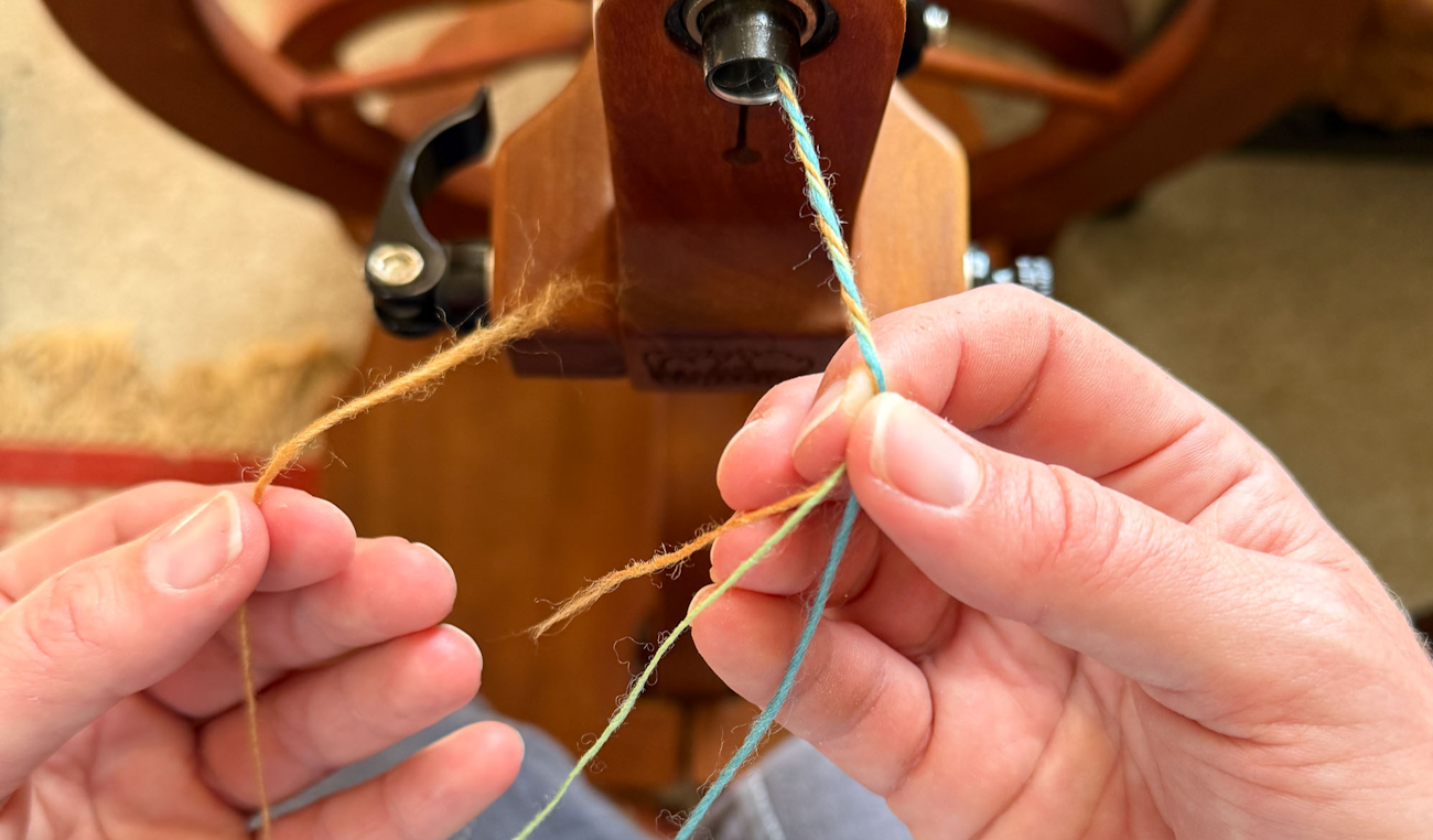 When one bobbin runs out of singles for plying, it's time to splice! Photo by Kate Larson