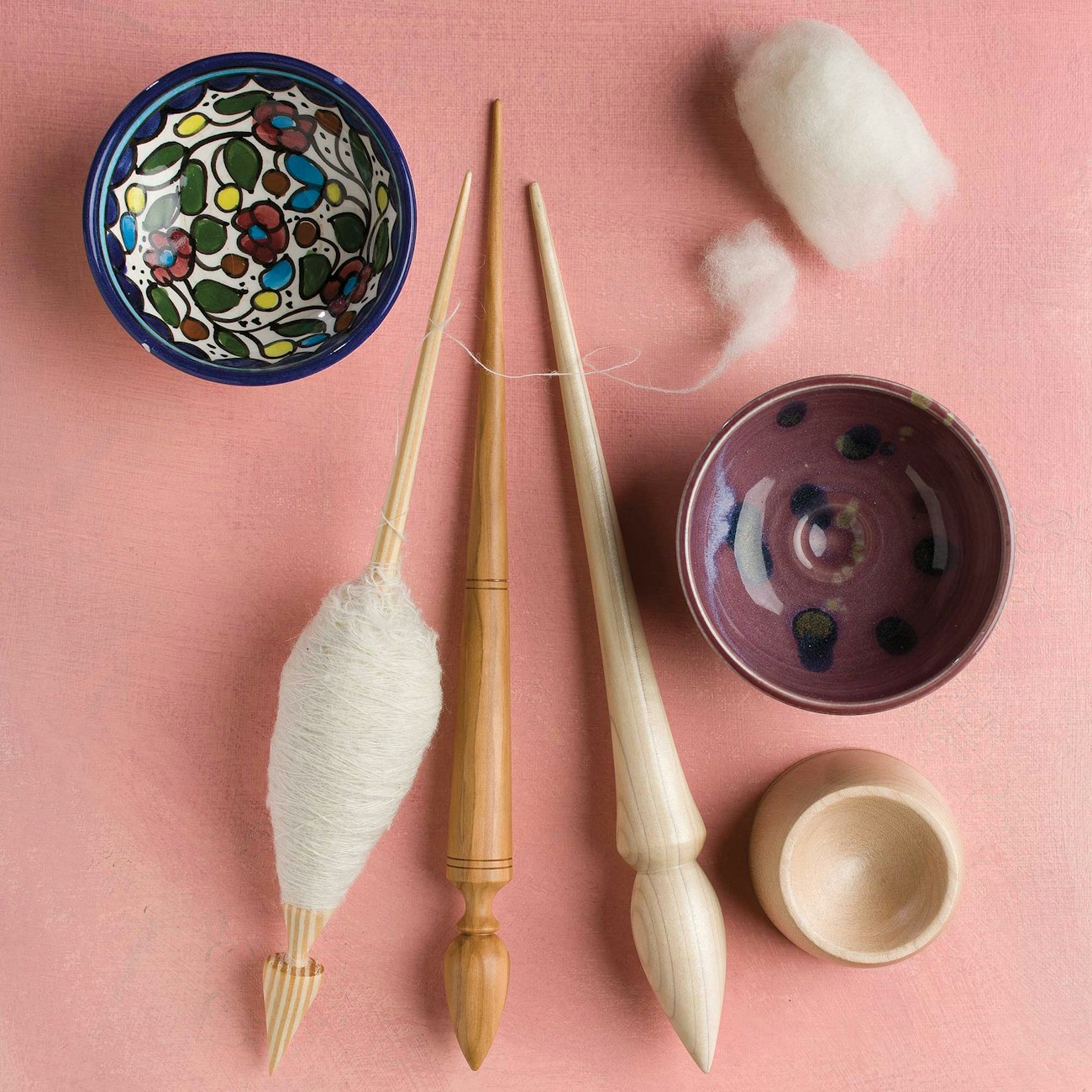 As Sukrita points out, “These spindles vary in size and shape across the world, depending greatly on what type of fiber and yarn they were made to spin. You will find that specific fibers are more easily spun with some types of spindles than others. Finding the combinations that work best for you can dramatically change the yarns you make and the enjoyment you find in creating them.”