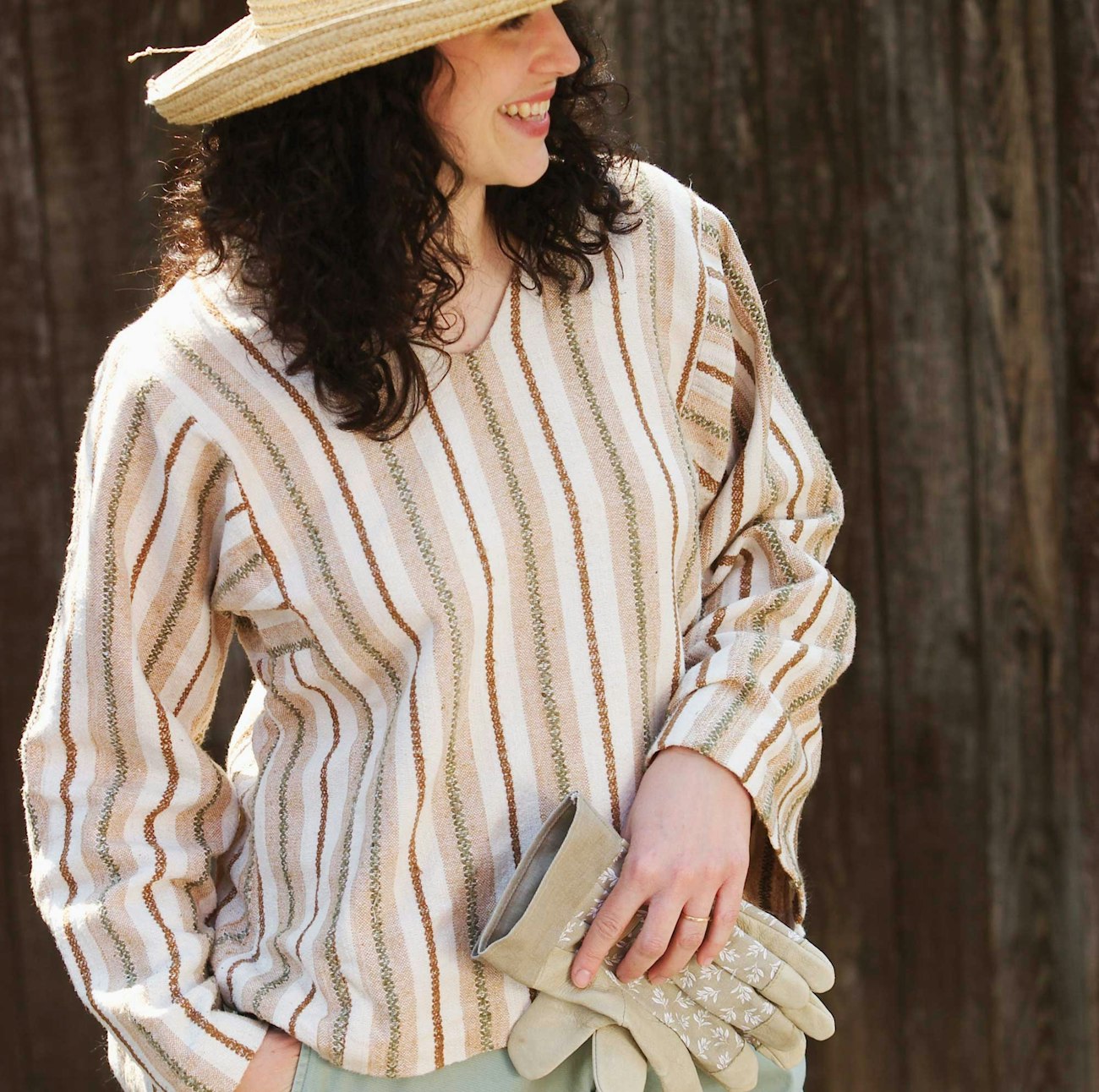 See how a small patch of cotton in a Florida garden turns into the ultimate casual and comfy cotton shirt. Ann Durham describes how she planted the seeds, tended the plants, harvested the cotton, ginned it, carded it, and spun it. She then wove the fabric in white, light brown, green, and dark reddish brown, and turned it into a pretty cotton blouse. Read more and get her basic project notes in Spin Off Summer 2004.
