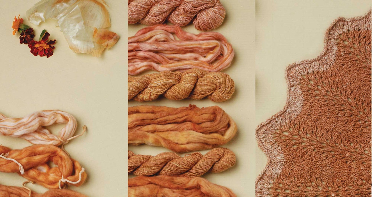 “First Steps in Cotton Dyeing,” by Devin Helmen, discusses how using onion skins and marigold petals yields lovely shades of orange-red and orangey-brown colors in handspun cotton. Devin also experimented with pulverized madder roots and revealed the differences in spinning cotton slivers that had been dyed before spinning with yarn dyed after. Find the article in Spin Off Winter 2015.