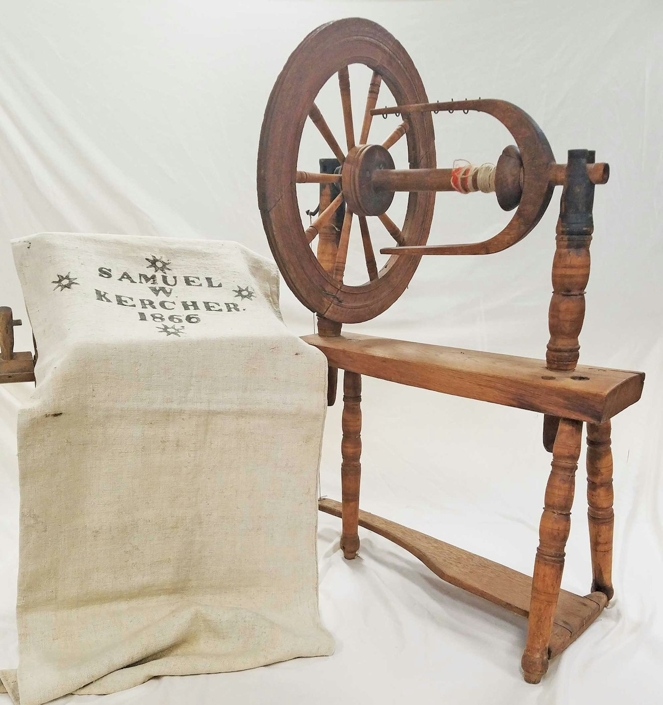 This 200-year-old tow wheel uses bobbin-lead tension, which contemporary spinners will recognize from Louet wheels.