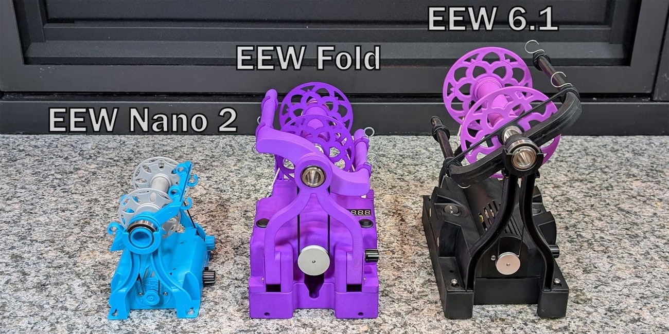 Left to right: The EEW Nano 2, EEW Fold, and EEW 6.1. The EEW Fold blends the portability of the EEW Nano 2 while using more premium components.