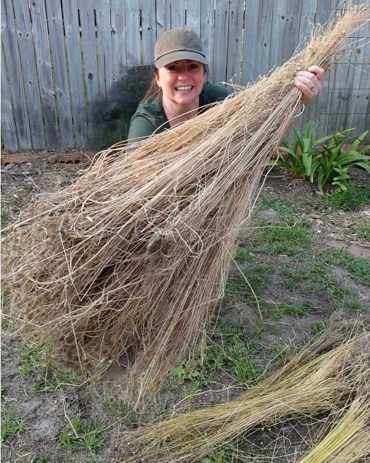 Pamela showing off last year’s flax harvest. Photo by Michael Schultz